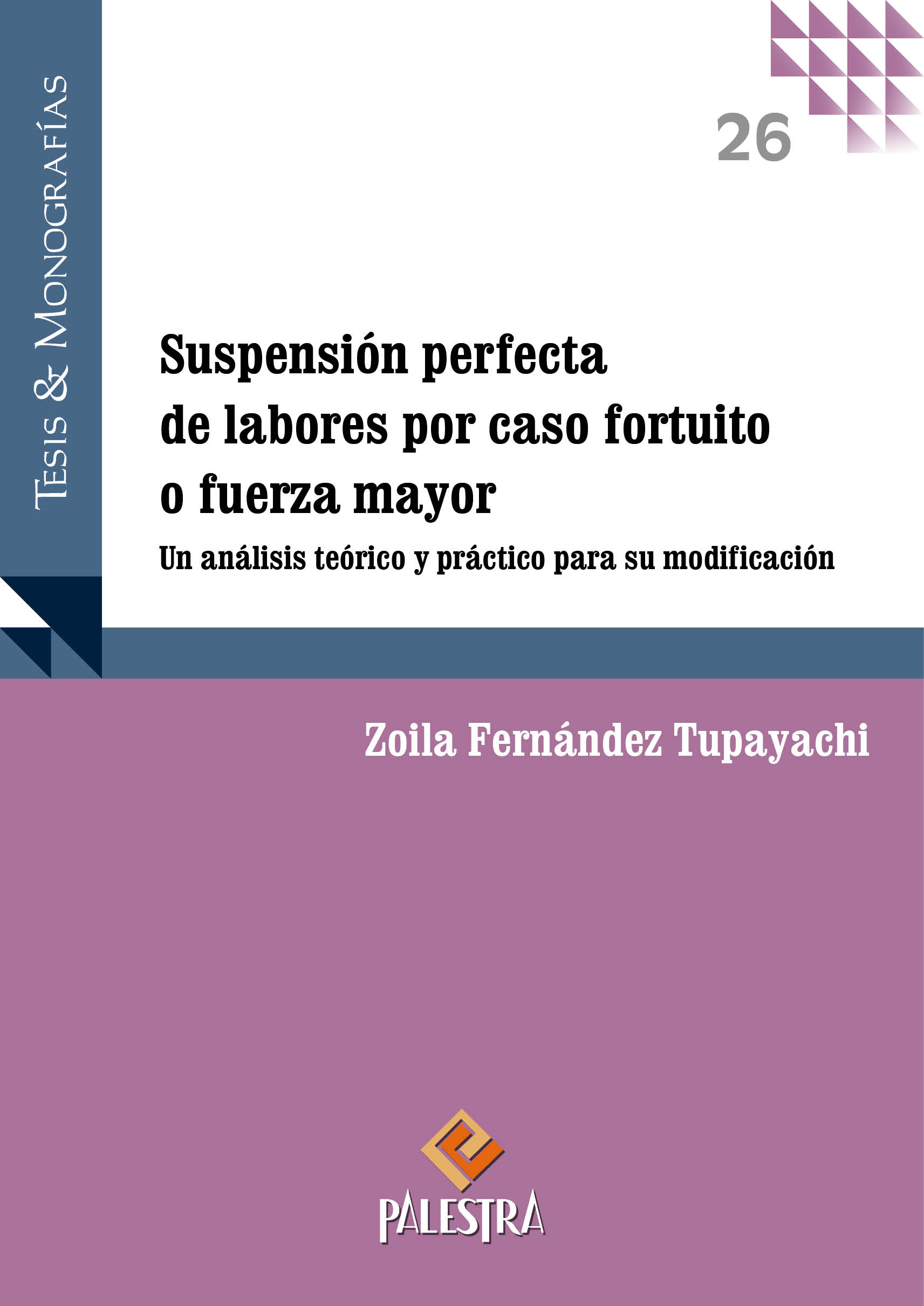 nEl último capítulo presenta al lector una propuesta de modificación de la suspensión perfecta por caso fortuito y fuerza mayor en aspectos referidos a la delimitación del caso fortuito y la fuerza mayor, el uso de las medidas alternativas, la duración de la suspensión y algunos aspectos del procedimiento administrativo.